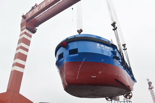 2020年1月10日,我公司為中遠(yuǎn)海運(yùn)散貨運(yùn)輸有限公司參與的“一帶一路”重大建設(shè)項(xiàng)目而批量建造的系列工作船第9艘——“益拖205”順利吊裝下水。 |