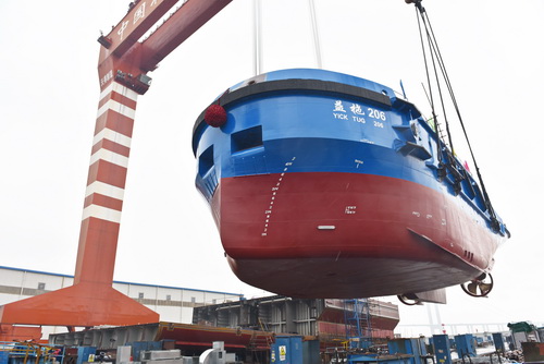 2020年1月16日,我公司為中遠海運散貨運輸有限公司參與的“一帶一路”重大建設(shè)項目而批量建造的系列工作船第10艘——“益拖206”順利吊裝下水。 |