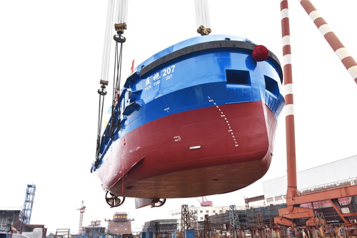 2020年1月18日,我公司為中遠海運散貨運輸有限公司參與的“一帶一路”重大建設項目而批量建造的系列工作船第11艘——“益拖207”順利吊裝下水。 |