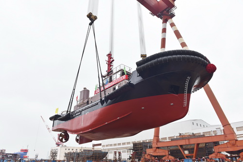 【下水】我公司2646kW全回轉(zhuǎn)拖船順利吊裝下水