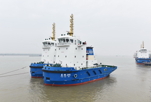 2020年4月18日,我公司為幾內(nèi)亞鋁土礦項目建造的系列工程船中的第五批次兩艘3600HP頂推船——“益拖204”、“益拖205”完工交付,順利出廠。 |