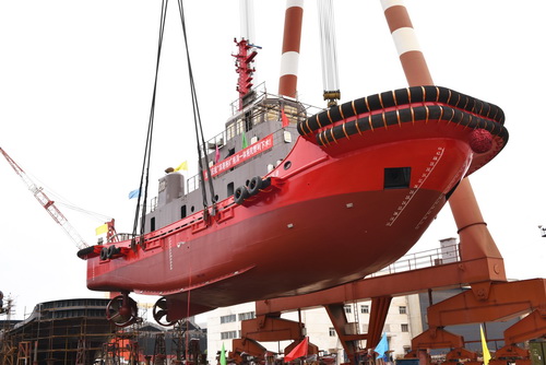 【下水】我公司順利下水2942kW拖消一體拖輪