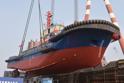 【新聞】我公司又一艘2942kW全回轉(zhuǎn)拖船順利吊裝接水