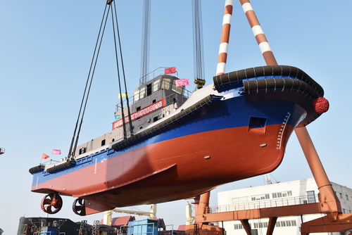【下水】我公司一艘3236kW全回轉拖船順利吊裝下水