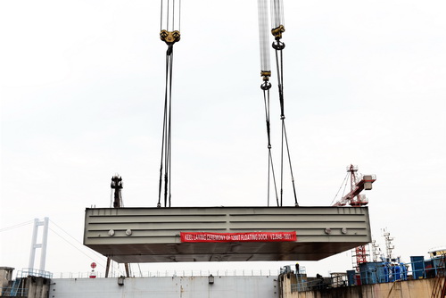 2019年5月25日上午,我公司為緬甸船東建造的1200噸浮船塢——VZJ946-1801上船臺(tái),該船入CCS中國船級(jí)社。 |