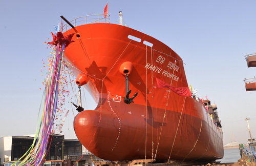 【下水】我公司建造的4900噸硫磺船命名下水